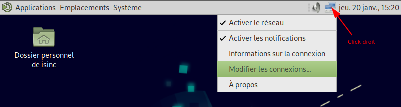 Ré-actualiser la connexion après la configuration du réseau pour prendre en compte la dernière mise à jour.