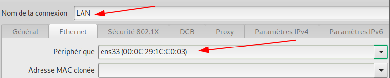 LAN, pour quel plus facilement identifiable - Sous l’onglet Ethernet, spécifier la carte réseau.